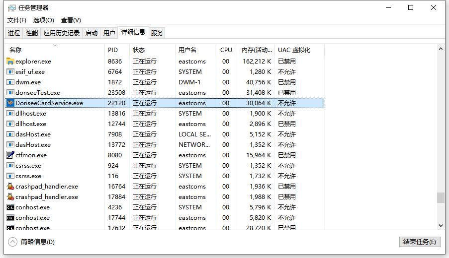 tasklist|findstr "22120",可以看到是程序:DonseeCardService.exe
